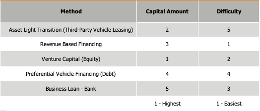 The vehicles are estimated to be financed with a 15-20% down payment and a vehicle loan. Shoffr is unlikely to obtain preferential rates for its loans at its current scale, therefore it can be assumed that the vehicles are financed at an interest of 12%.